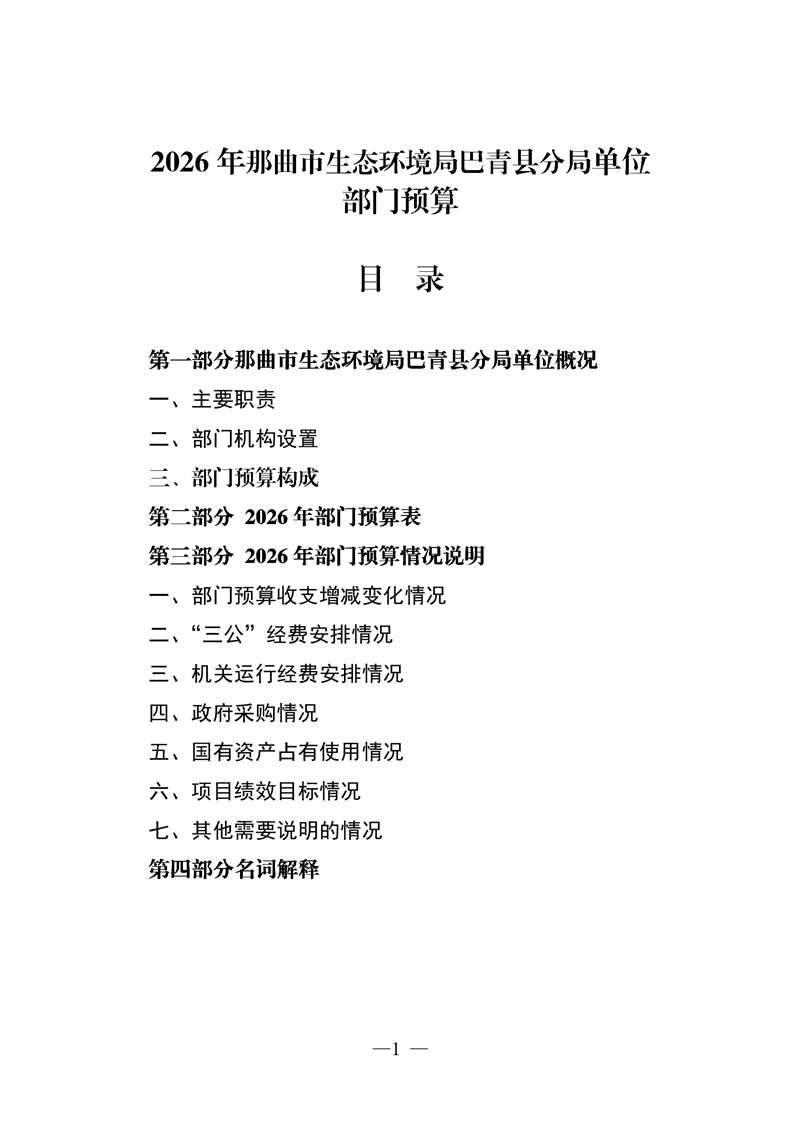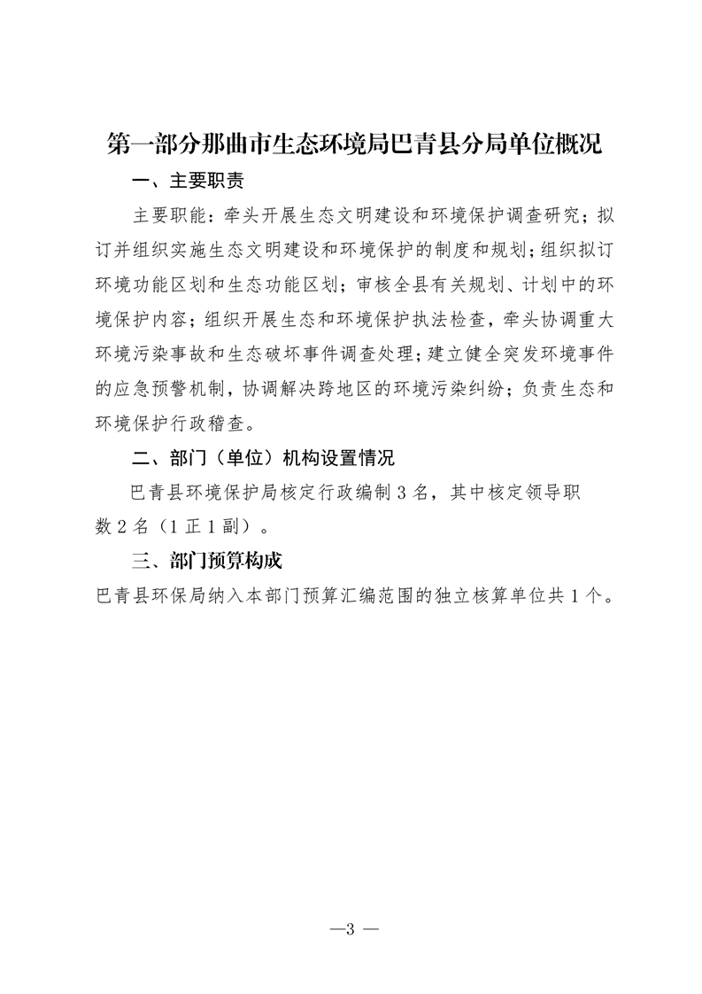2026年那曲市生态环境局巴青县分局(单位)部门预算