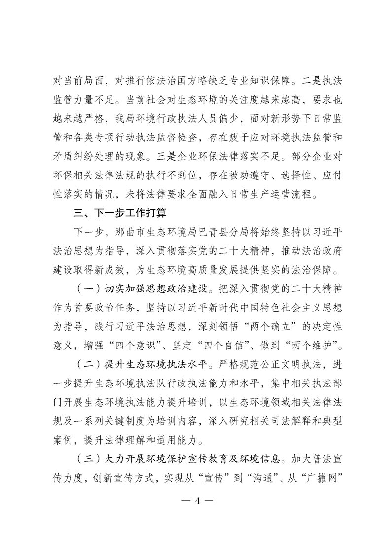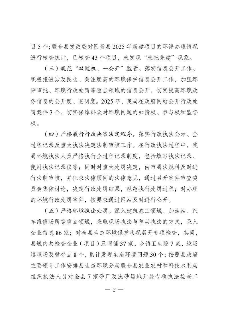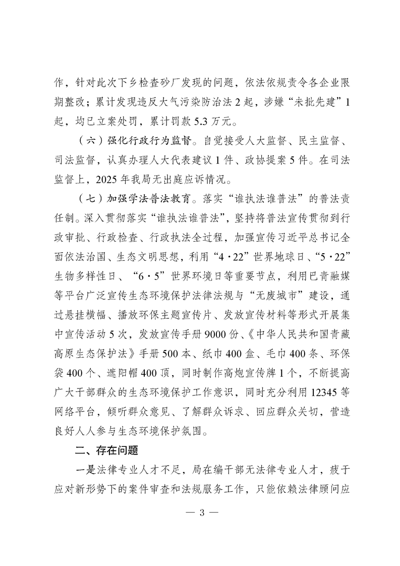 那曲市生态环境局巴青县分局2025年度法治政府建设情况报告