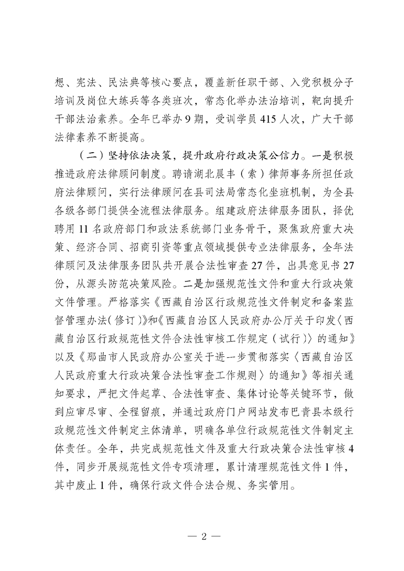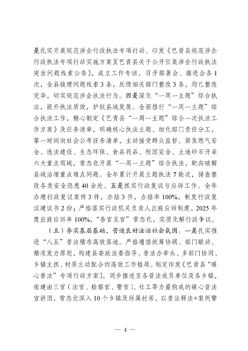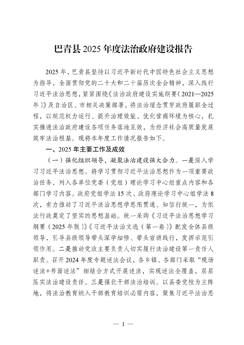 巴青县2025年度法治政府建设报告